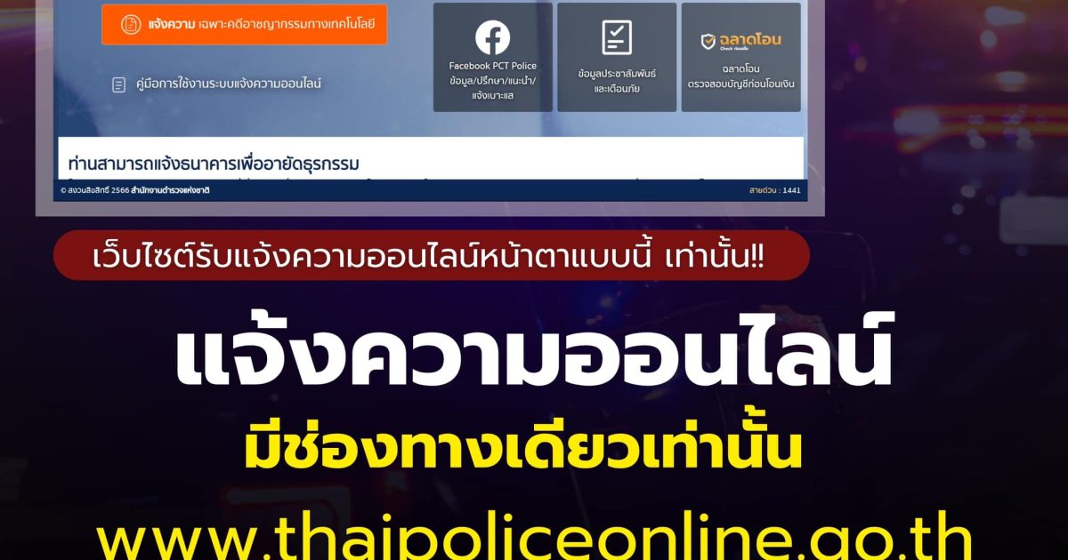 แจ้งความออนไลน์ มีช่องทางเดียว ที่เดียวเท่านั้น ที่เว็บไซต์ แจ้งความออนไลน์ www.thaipoliceonline.go.th