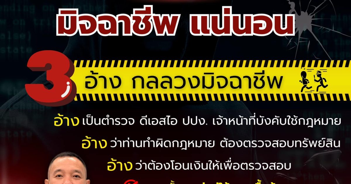 หากพี่น้องประชาชนพบเห็นเจ้าหน้าที่ตำรวจ หรือเจ้าหน้าที่ของรัฐ ใช้วิธีการวิดีโอคอลหาท่าน เพื่อโน้มน้าวหรือข่มขู่ให้ท่านโอนเงิน เพื่อแสดงความบริสุทธิ์ใจ เพื่อให้เจ้าหน้าที่ตรวจสอบ หรือบางครั้งอาจข่มขู่ถึงขั้นให้ถอดเสื้อผ้า ถ่ายคลิปวิดีโอ ขอให้พี่น้องประชาชนนึกไว้ก่อนเลยว่าเป็นมิจฉาชีพแน่นอน