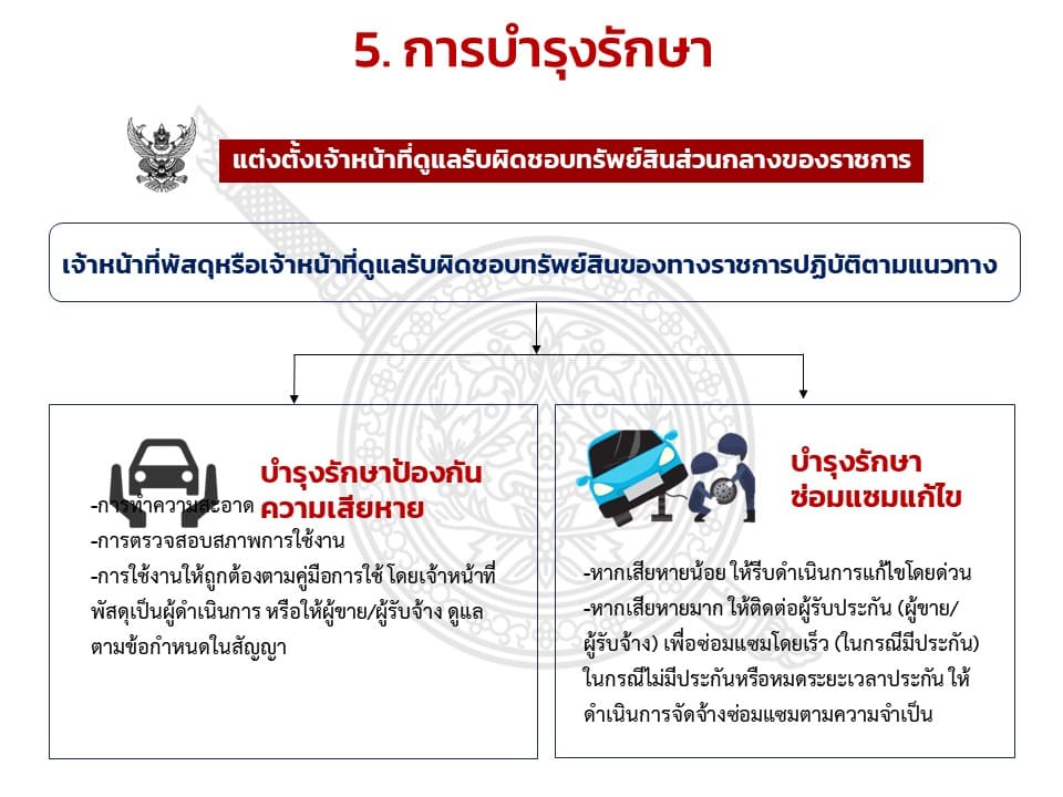 การจัดเก็บยานพาหนะ และการบำรุรักษา ทรัพย์สินของทางราชการประเภทยานพาหนะ (รถยนต์และรถจักรยานยนต์)