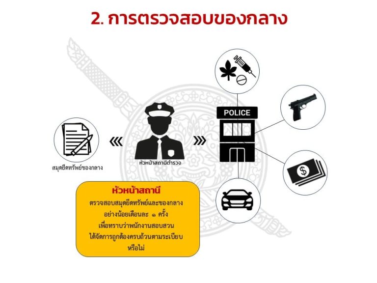 จัดสถานที่เก็บของกลาง ไว้ในที่มั่นคงแข็งแรง มอบหมายให้มีผูู้รับผิดชอบ และจัดทำทำบัญชีควบคุมไว้อย่างเป็นระบบ