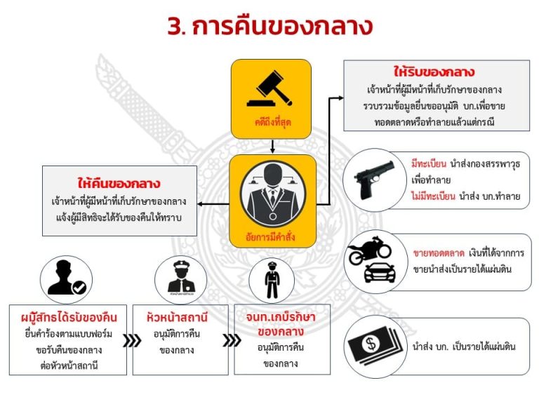 Infographic แนวทางปฏิบัติการจัดเก็บรักษาและจำหน่ายของกลาง
